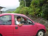 上岡さんからお借りした ピンクの自動車で動き回る