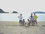 屋鈍の海岸で松元さんたちにビールをごちそうになる。