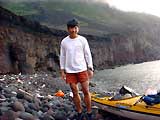 しかしだんだん追い波(後ろから来る波、カヤックを横向きにするいやな波)がカヤックを襲い、何回か転覆しそうになる。