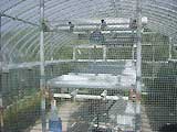 蚕棚のようなトレーに 海水を入れ蒸発させる 中の温度は60度 近くになっている。
