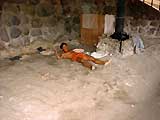 砂蒸し風呂、横になるだけで汗が噴き出す。