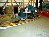 シーカヤックを宿の倉庫に移し台風に備える。
