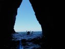 そんなこんなを繰り返しながらも単調で感動の海峡横断約18kmを4時間足らずで終えて口永良部島東部の城ヶ鼻近くの海岸に上陸したのだ。もっともその前に海食洞を見つけたので「穴があったら入りたい!」と3つほど入り遊んでからの上陸だったが・・・
